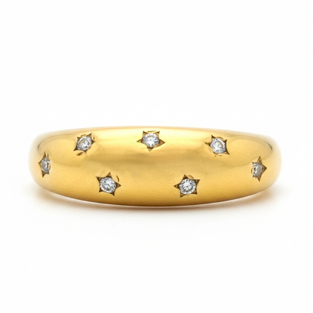 Embrace nocturnal elegance with the Nightsky Gold Ring—a sophisticated piece that captures the allure of starlit skies. Crafted with refined detailing, this ring combines luxe gold tones with an enchanting celestial aesthetic, making it the perfect statement accessory for those who appreciate understated glamour. Versatile enough for everyday wear yet striking enough for special occasions, it effortlessly elevates any look with timeless appeal.
